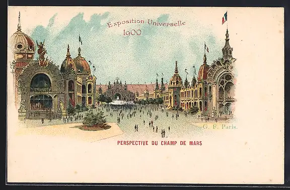 Lithographie Paris, Exposition universelle de 1900, Perspective du Champ de Mars