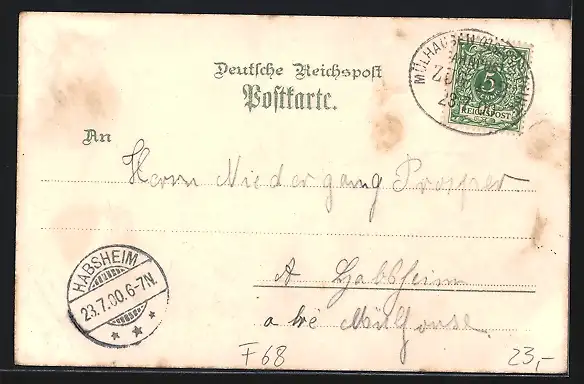 gelaufen 1900, Eckknick re. unten, guter Zustand