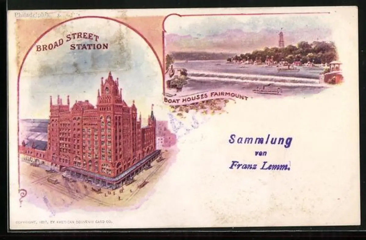Lithographie Philadelphia, Broad Street Station, Boat Houses Fairmount