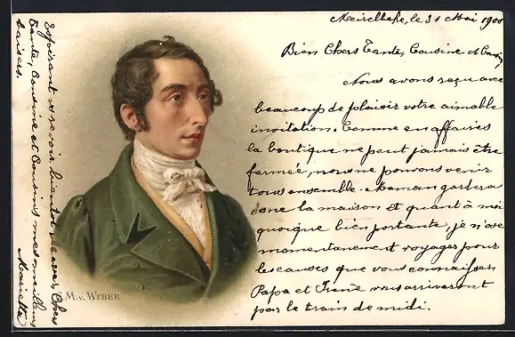 Lithographie Porträt des Komponisten C. M. v. Weber