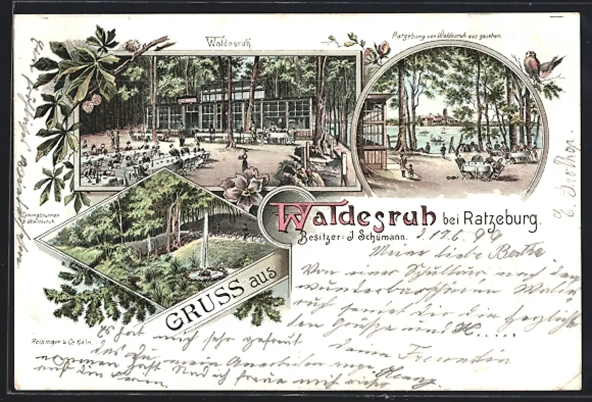 Lithographie Ratzeburg, Gasthaus Waldesruh, Gartenlokal