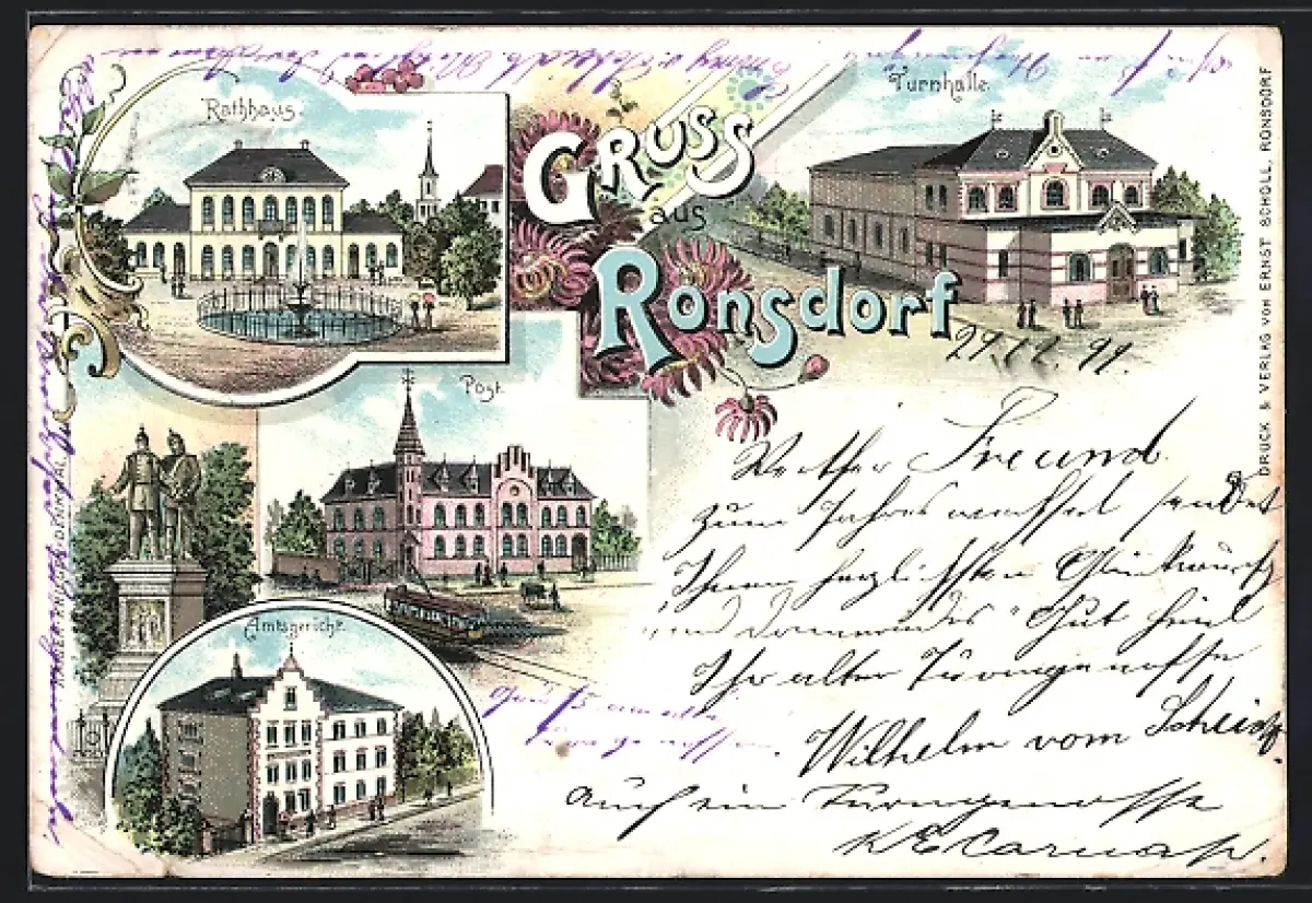 Lithographie Ronsdorf, Amtsgericht, Turnhalle, Post