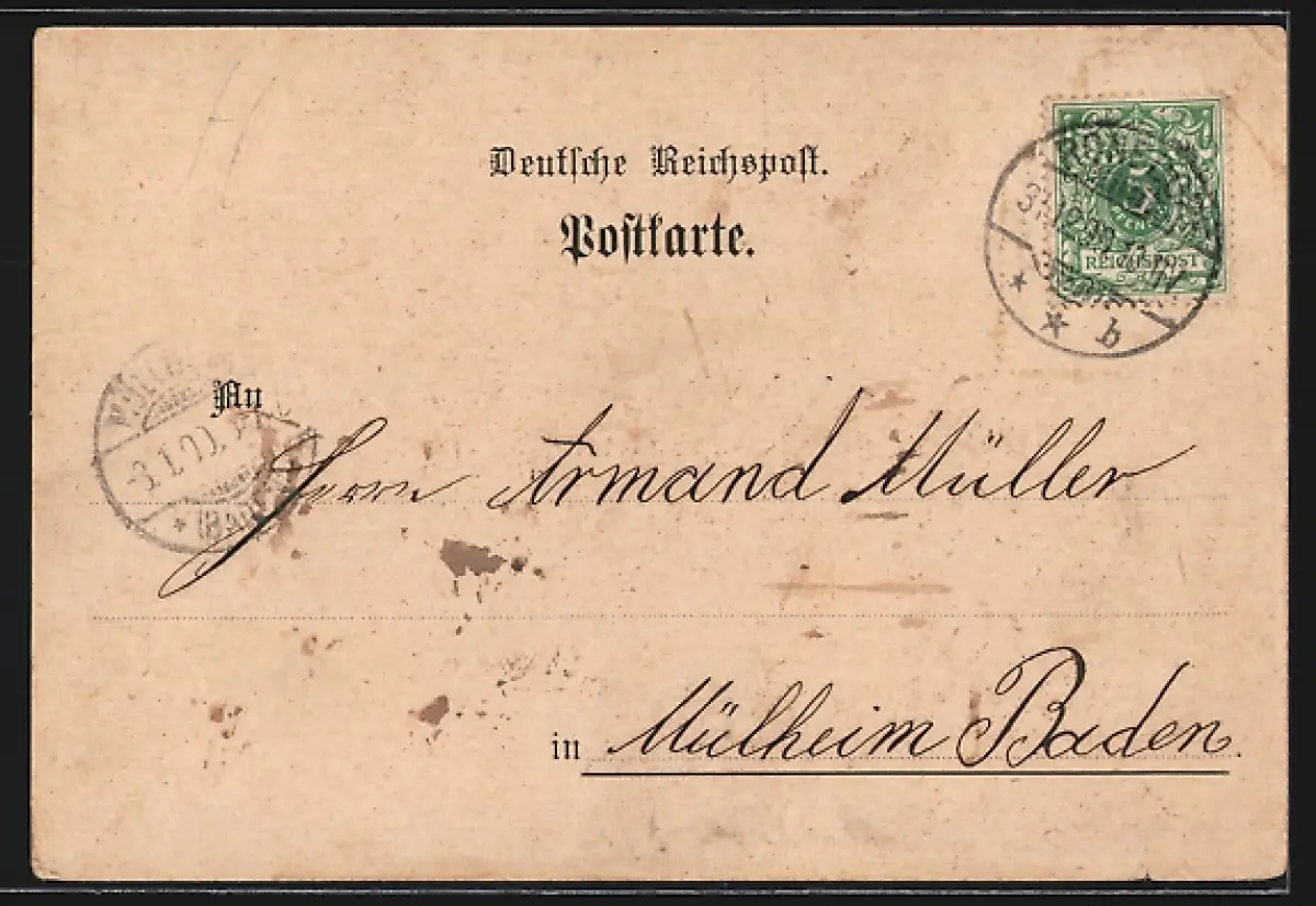 gelaufen 1899, Eckknicke unten und li. oben, guter Zustand