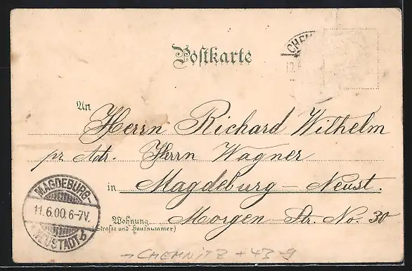 gelaufen 1900, Briefmarke entfernt, rückseitig Oberflächenschaden, guter Zustand