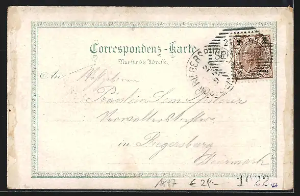 gelaufen 1897, rückseitig Klebe- und Papierreste, guter Zustand