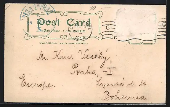 gelaufen 1904, Briefmarke entfernt, rückseitig Oberflächenschaden, guter Zustand