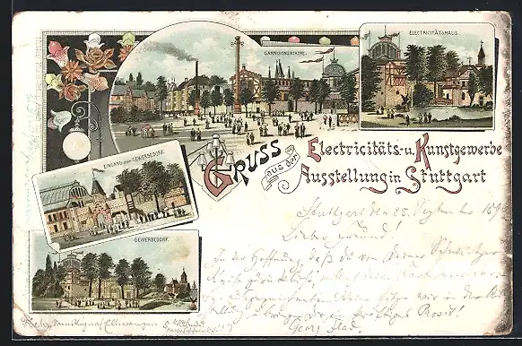 Lithographie Stuttgart, Elektrizitäs- und Kunstgewerbe Ausstellung, Gewerbedorf