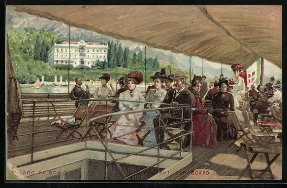 Lithographie Sul Piroscafo, Auf dem Sonnendeck eines Salonschiffes