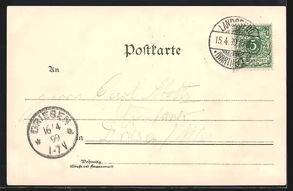 Personenbezogene Daten auf der Rückseite der Karte wurden durch blauen Textmarker unkenntlich gemacht. Die blauen Stellen sind auf die Vorderseite durchgeweicht und wirken sich negativ auf das Postkartenfoto aus