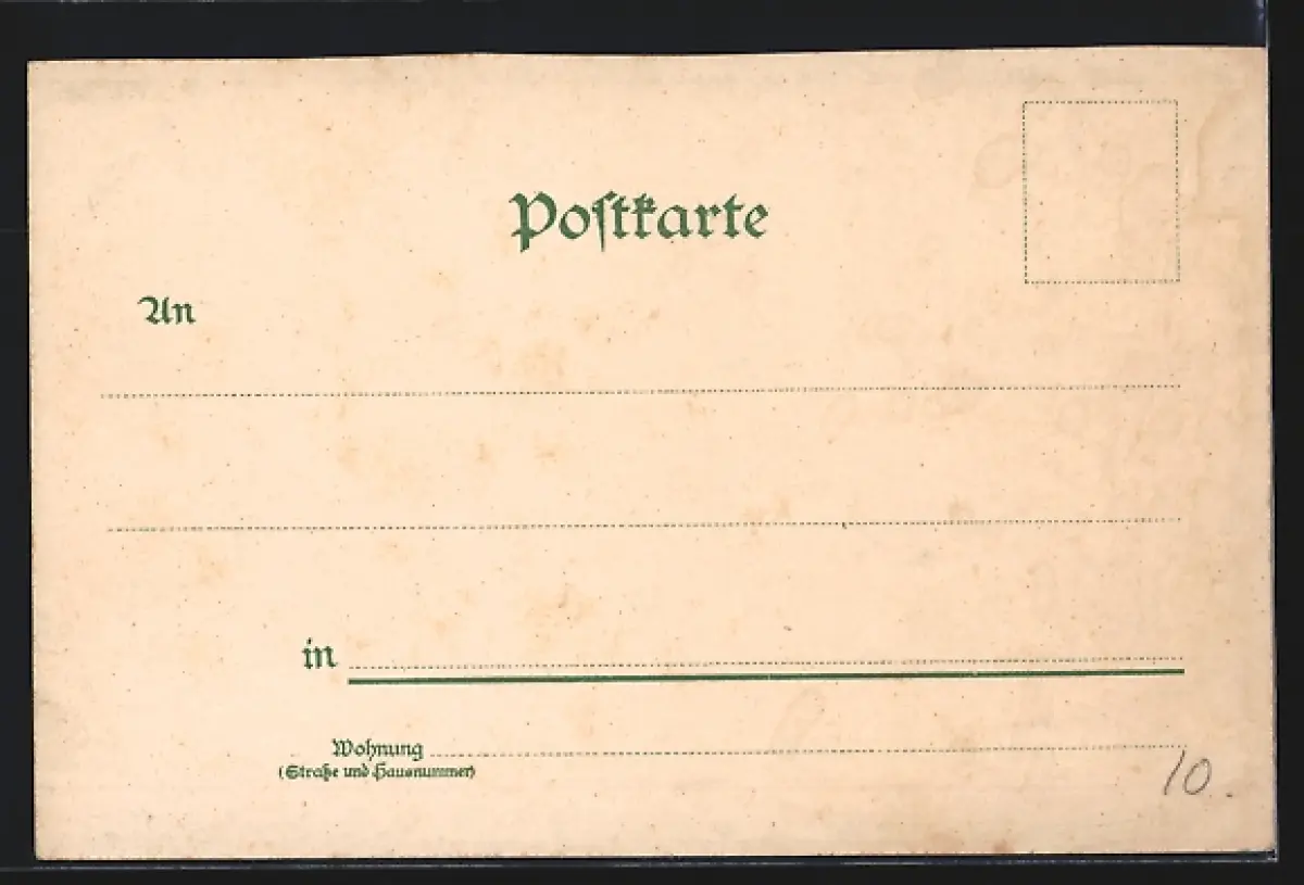 Personenbezogene Daten auf der Rückseite der Karte wurden durch blauen Textmarker unkenntlich gemacht. Die blauen Stellen sind auf die Vorderseite durchgeweicht und wirken sich negativ auf das Postkartenfoto aus