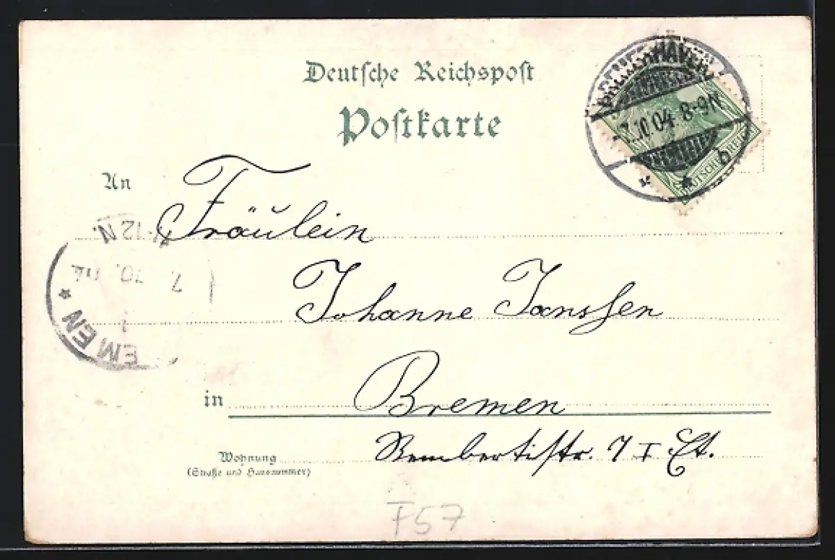 gelaufen 1904, Eckknick re. unten, guter Zustand