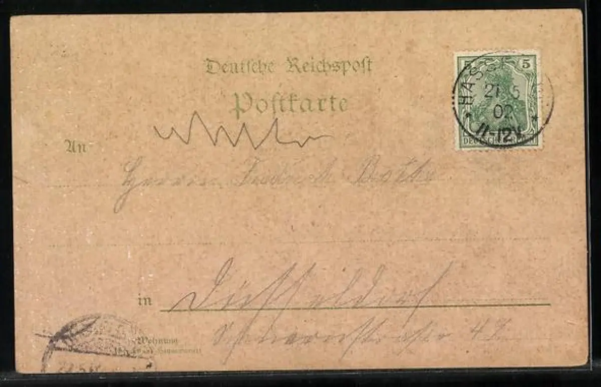 gelaufen 1902, Eckknick re. unten, guter Zustand