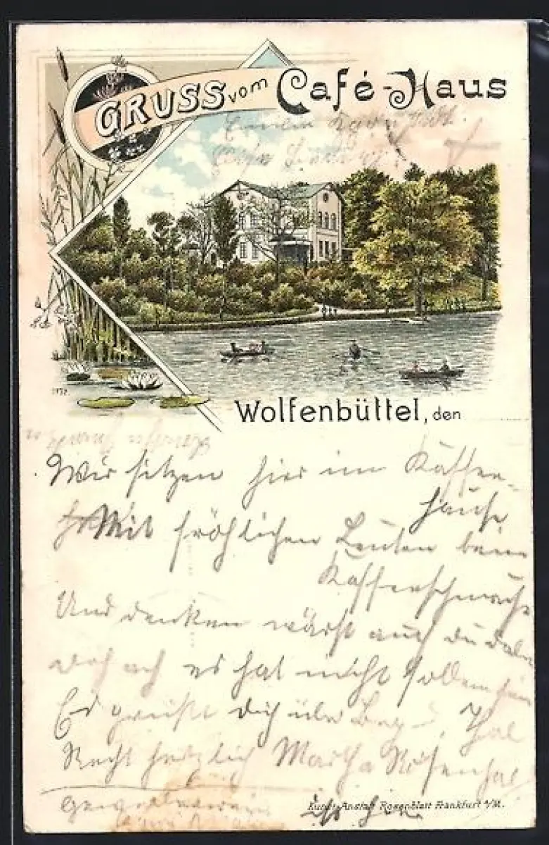 Lithographie Wolfenbüttel, Partie am Cafe-Haus