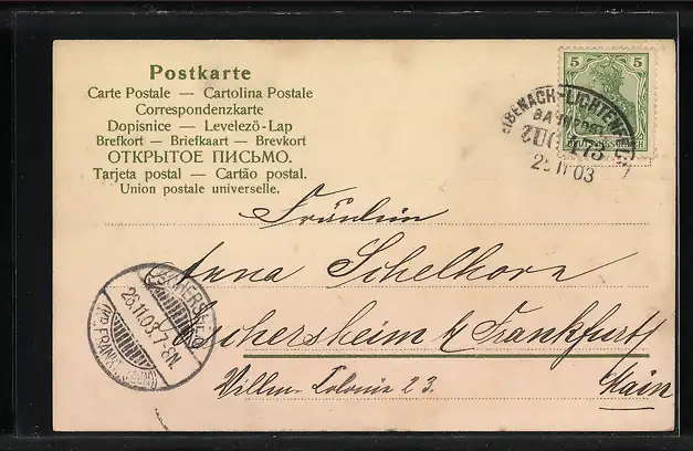 gelaufen 1903, Eckknick unten li., Stempelspur, guter Zustand