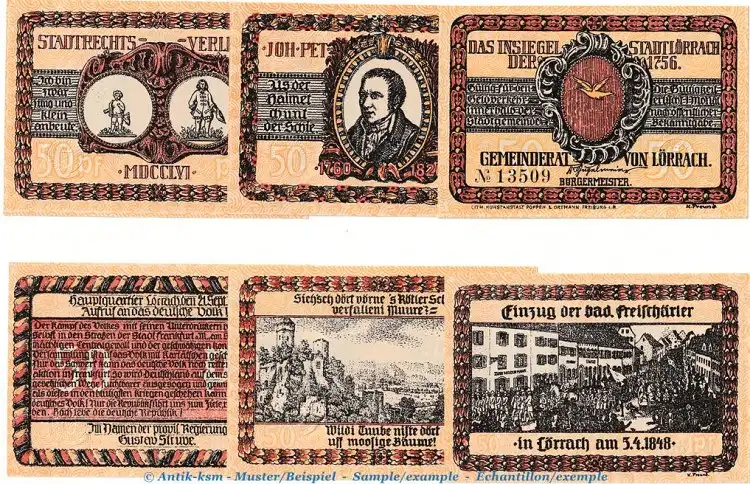 Stadt Lörrach , Baden / Baden-Württemberg , 6 Scheine : 6 x gleiche Kennummer