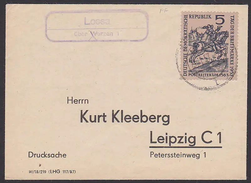 Lossa ber Wurzen Ds mit 5 Postreiter, dieser mit PF "„pfelndes Pferd" (600 I)