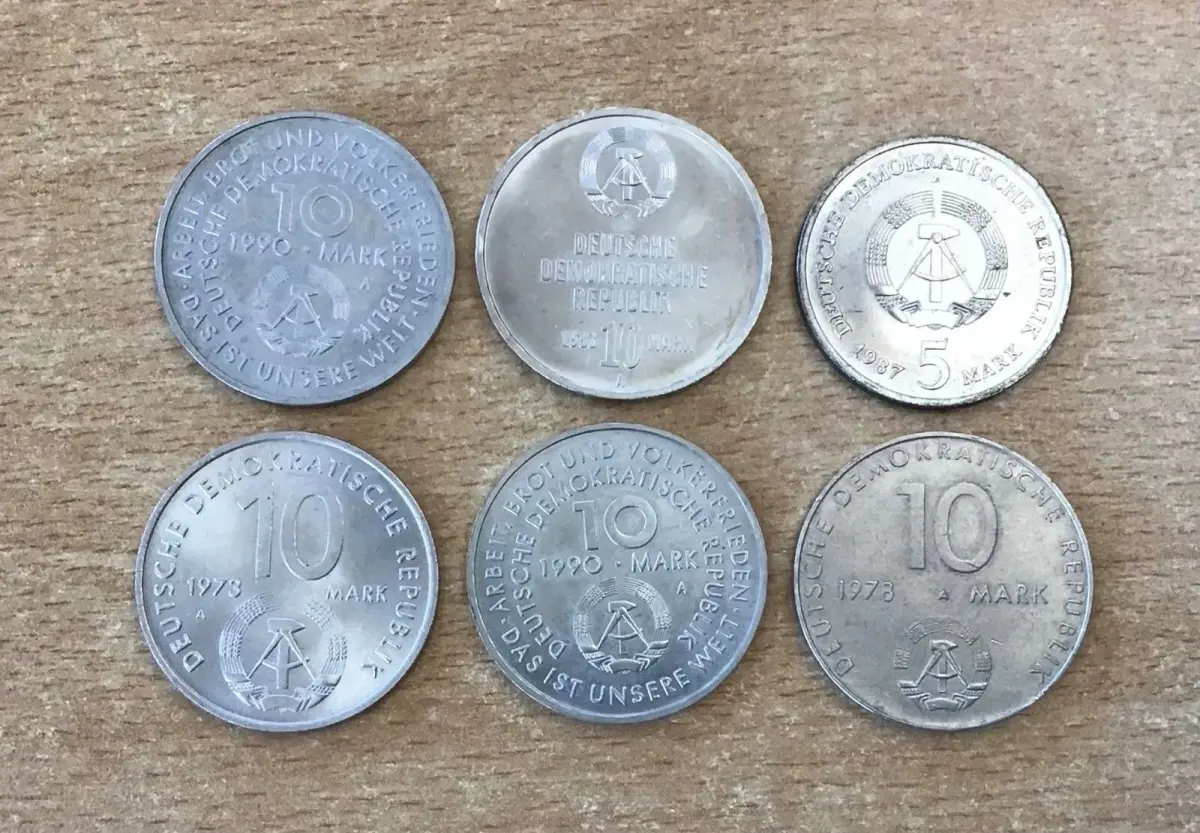 Lot/ Konvolut 6 x DDR Münzen 5 und 10 Mark 1973 - 1990
