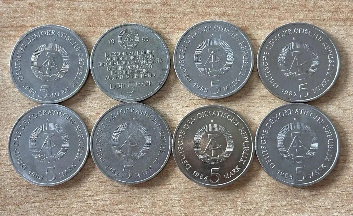 Lot / Konvolut 8 x DDR Münzen 5 Mark Leipzig,Dresden, Weimar, Eisenach, Eisleben