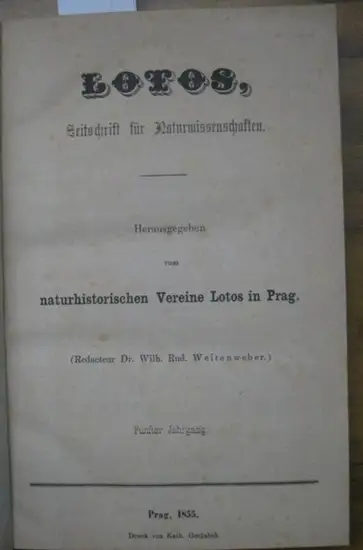 Lotos. - Weitenweber, Wilh. Rud. (Red.). - Friedr. Abl / Prof. Koristka / Prof. Reuss / Prof. Nickerl / C. v. Nowicki / P. M. Opiz / Emil Porth / Prof. Freih. v. Leonhardi / Carl Feistmantel / Sekera / Wilhelm Wolfner / Josef Knaf / u.v.a. Autoren: Lotos