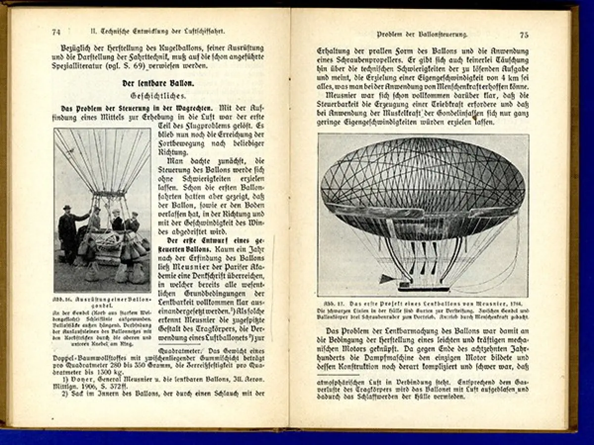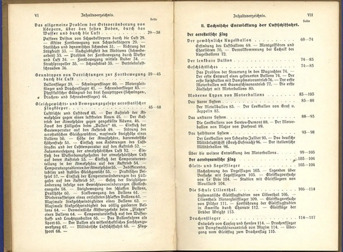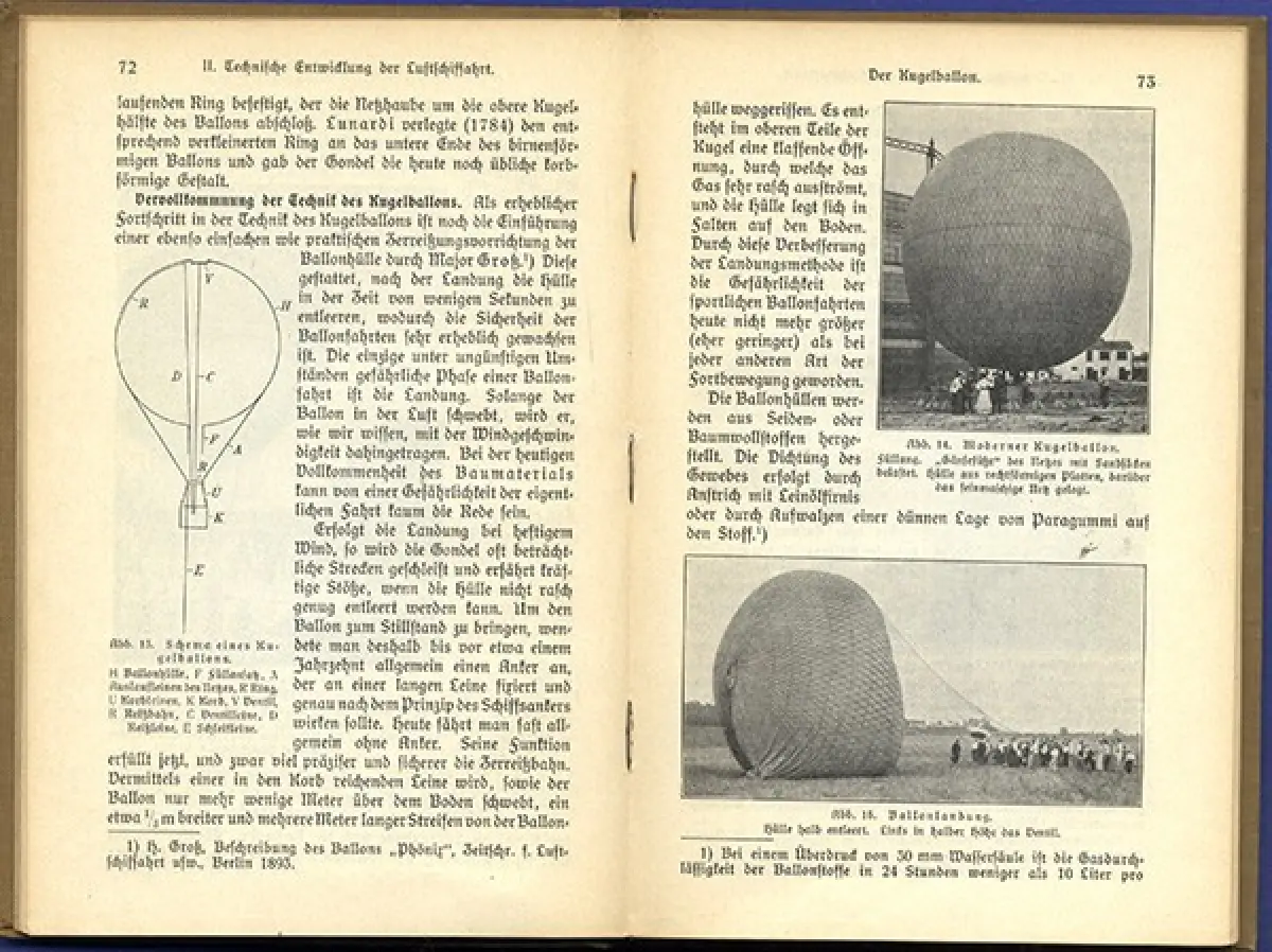 mit Gesamt 186 Seiten photographischen und druckgraphische Abbildungen einem Sachreghistr Geschichte und Pioniere der Ballon Fliegerei technischer Stand und Entwicklung heutiger Ballone und Flugapperate die technischen Vorbereitungen eines Ballonfluges Aufstieg und Fahrten Dauer und Weitreisen Fahrten ins Gebirge Bedingungen der wissenschaftlichen Ballonfahrten Landemanöver und deren Vorbereitung weitere Entwicklung des Motorballons Luftschiffahrt und Gleitflieger der neueste Stand der Luftschiffahrt