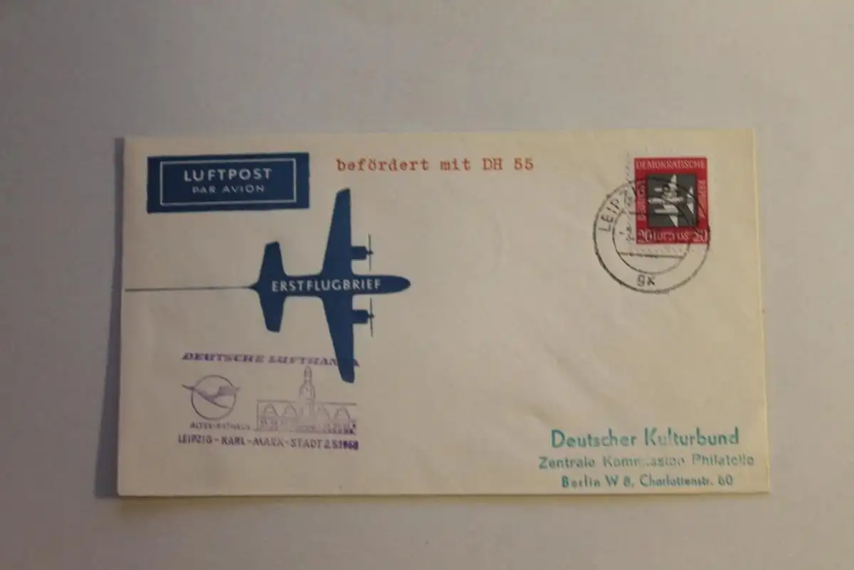 Lufthansa Erstflugbrief DH 55; Leipzig-Karl-Marx-Stadt 2.5.1958