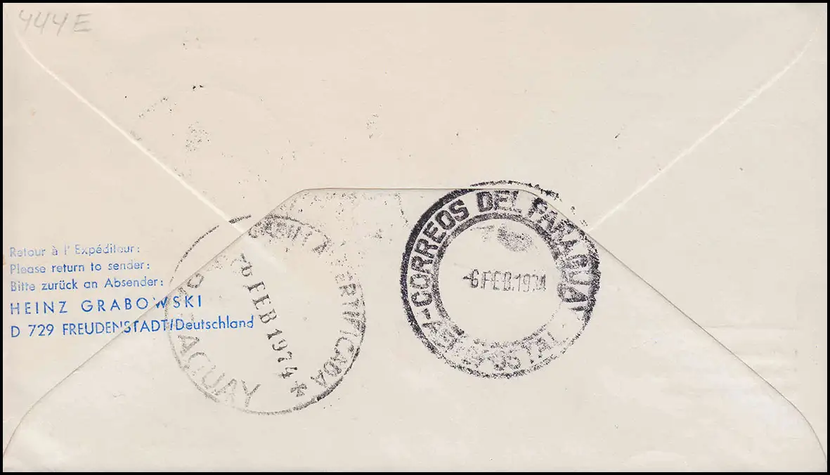 Lufthansa R-Lettre 40 J. Aéroports vers l'Amérique du Sud STUTTGART/ PARAGUAY 3/6.2.1974