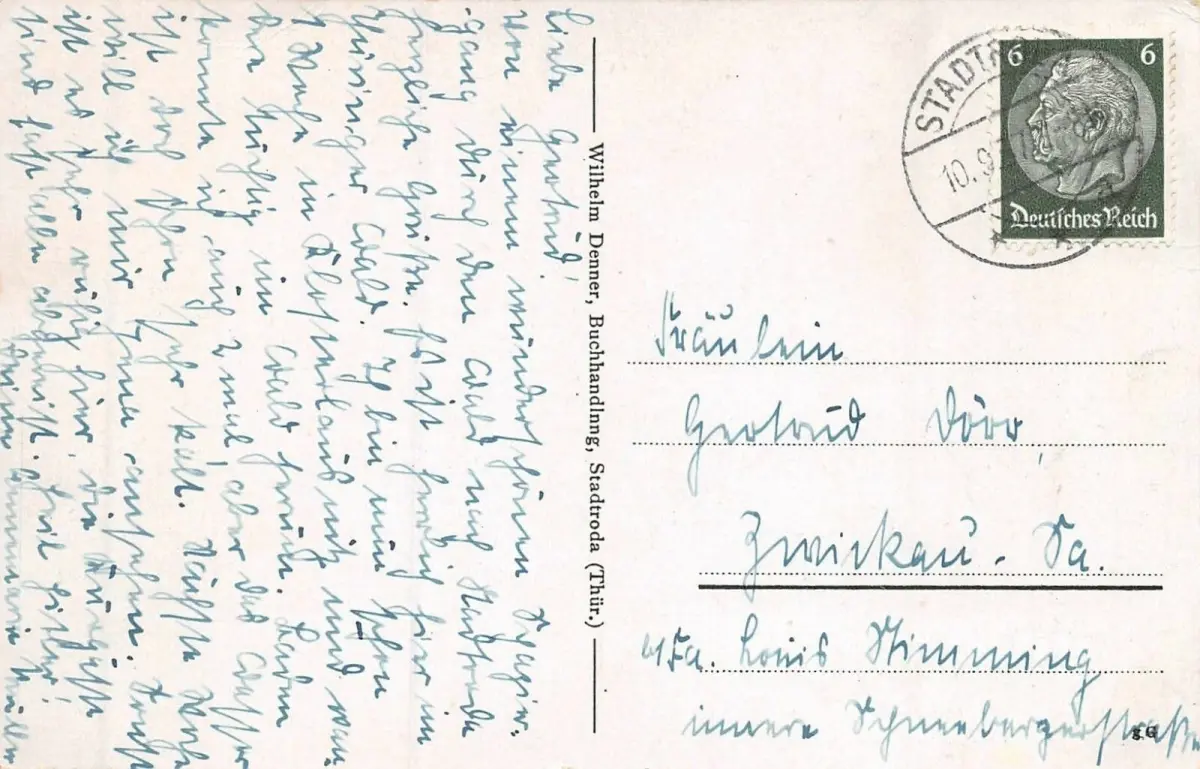 Rückseite: gelaufen 1937 von Stadtroda