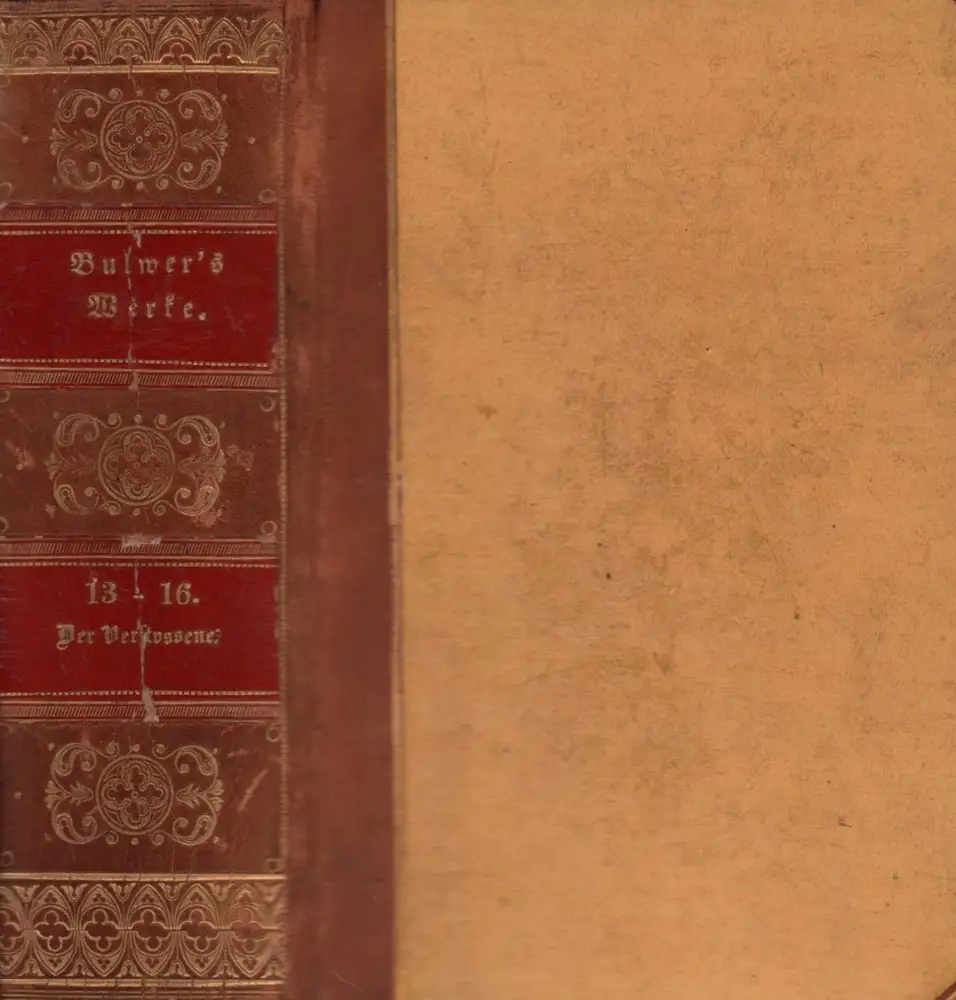 Zwickau, Gebrüder Schumann, 1834, X, 244; 248; 230; 239 S. (= E. L. Bulwer’s Werke, 13-16). 12mo. Goldgeprägtes OHALBLEDER m. 2 roten RSch.