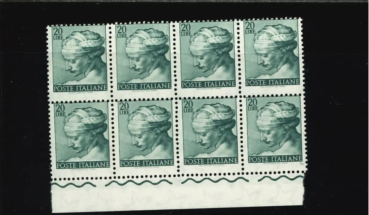 MNH - Vollgummi - MICHELANGIOLESCA 20 L. IV STARK VERSCHOBENE VERZAHNUNG 8ER BLOCK - Cod. ITAV_0405