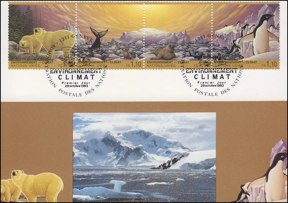 MK 20 de l'ONU Genève 239-242 Changement climatique 1993, carte officielle maximale
