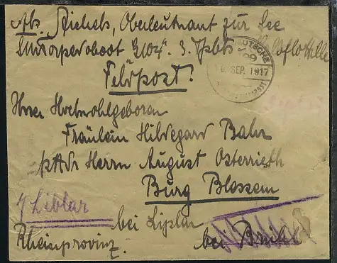 MSP 199 10 SEP 1917 (Stpl. Typ III) III. T-Boots-Halb- flottille auf FP-Bf.,