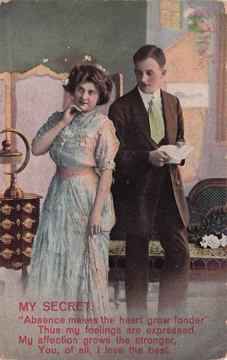 MY SECRET "Absence makes the heart grow fonder" Thus my feelings are expressed, My affection grows the stronger, You, of all, I love the best.