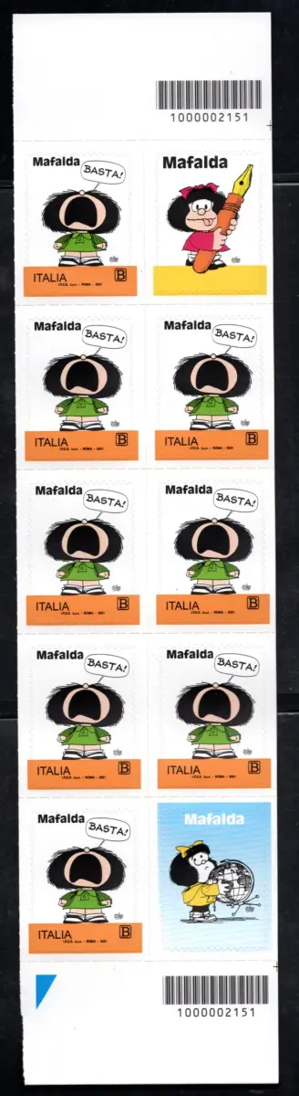 Ausgabe gewidmet Mafalda in vertikalen Blöcken von acht Briefmarken und zwei Erinnofili und Barcode - Block rechts Cod. 1706 / WEB
