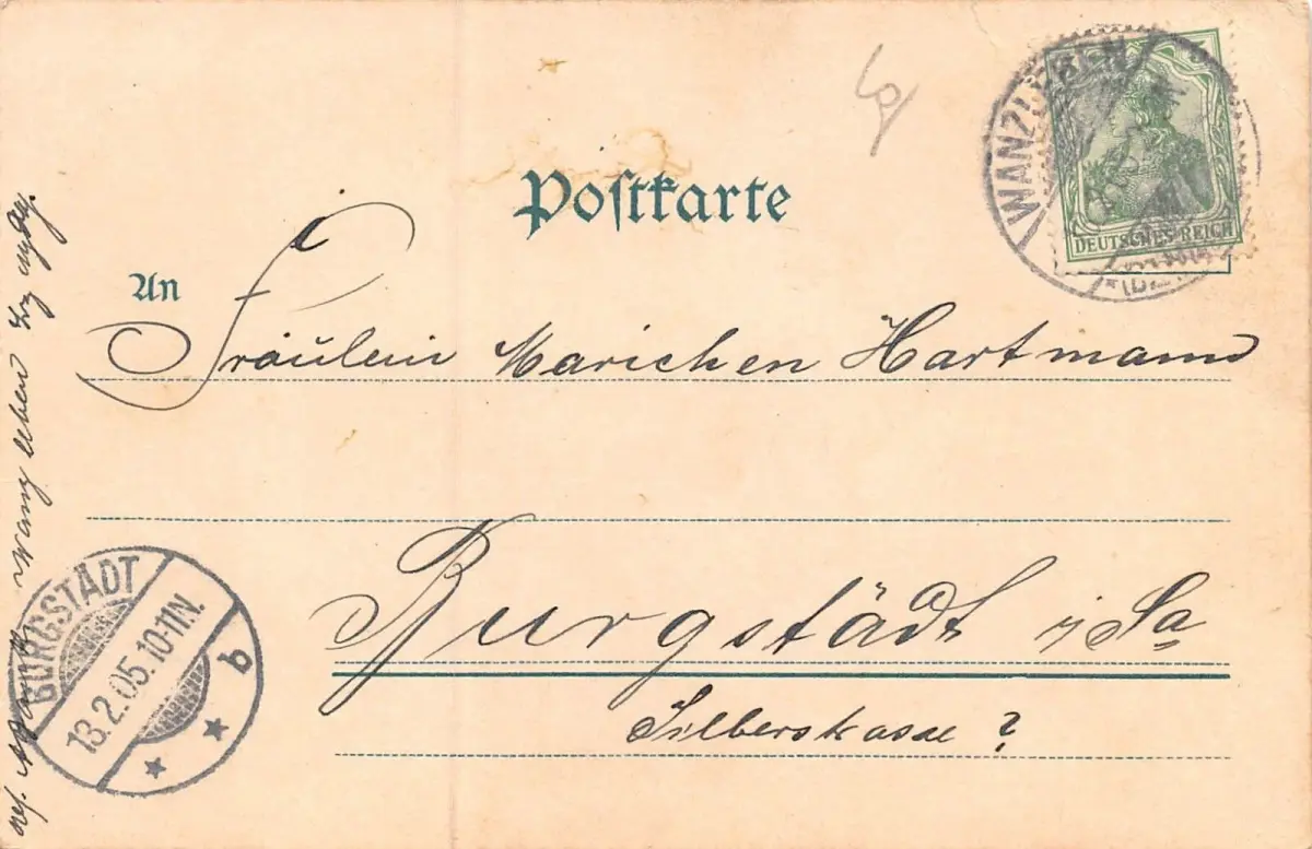 Rückseite: gelaufen 1905 von Wanzleben nach Burgstädt