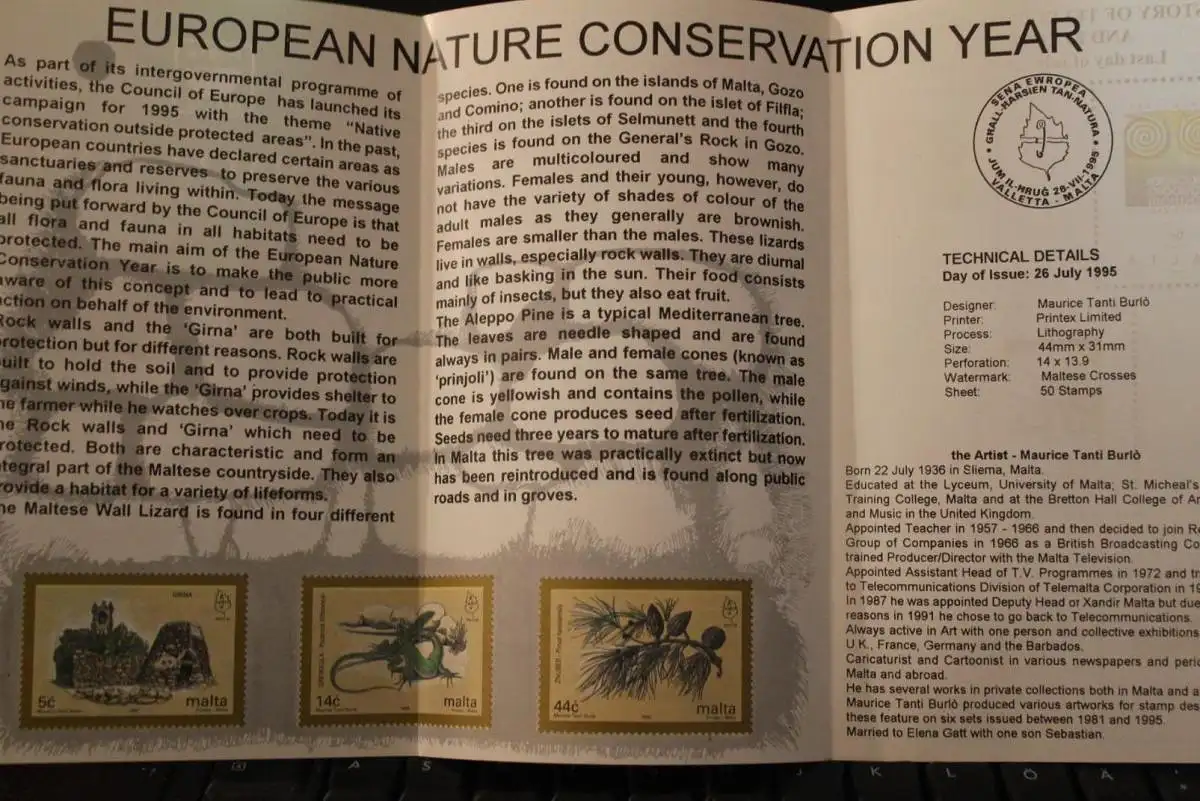 Malta, Europäisches Naturschutzjahr 1995, ENCY '95; Official Bulletin of the Posta Malta; MiNr. 964-66; ESST