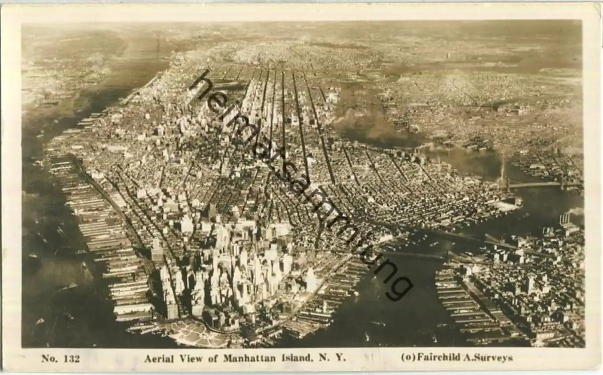 Manhattan Island - Aerial View - Foto-AK - Verlag Wm. Frange New York City - Briefmarke entfernt (G2945) gel. 1935