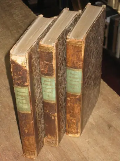 Freie Beschreibung: 21,2 x 13,6 cm. Halblederbände mit grünen Rückenschildern Die Rücken mit Fehlstellen im Leder bis ca. 2 x 2,5 cm, die Buchrücken wurden nachgeleimt (geklebte Einrisse bis ca. 8 cm). Regulär ausgeschiedene Exemplare mit Schildern nur im Innenteil (Innendeckel) und Stempeln auf den Titelblättern. XIV, (2), 390 Seiten / XXII, (2), 343 Seiten / XIV, 448 Seiten. Die Innendeckelecken leicht leimschattig, die Innenteile ansonsten sauber und hell, die Seiten fest