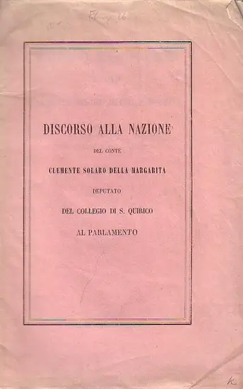 Margarita, Clemente Solaro della: Discorso alla Nazione del Conte, Deputato del collegio di S. Quirico al Parlamento.