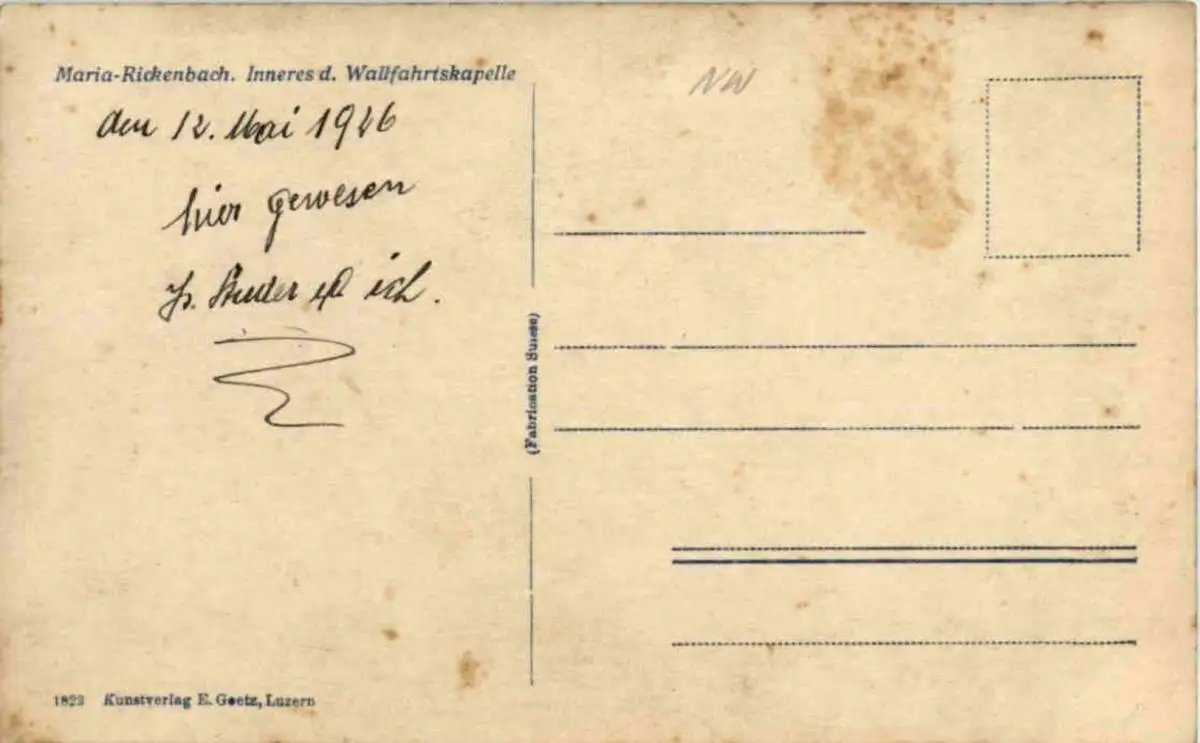 Danke. Alles Bestens. Können Sie mir allenfalls mitteilen, aus welchem Jahr die Postkarte stammt? Besten Dank.