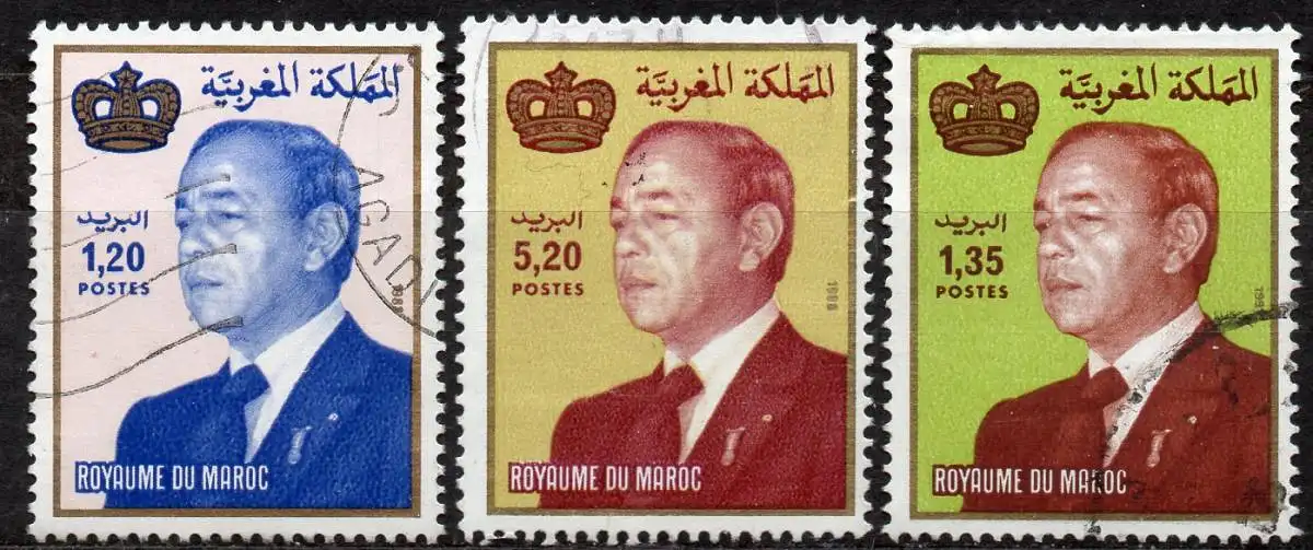 Marokko, Mi-Nr. 1149, 1150 + 1195 gest., König Hassan II.