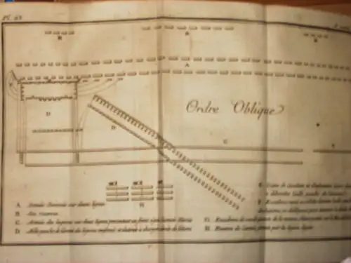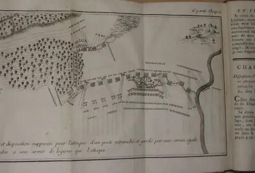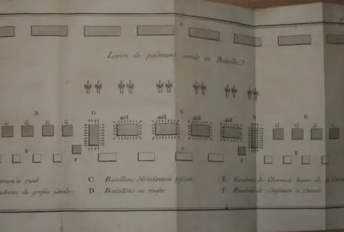 guter Zustand, geringe Gebrauchs- und Alterungsspuren - Einband etwas abgenutzt, berieben, mit kleinen Abschürfungen - untere Ecke des Deckels etwas gestaucht - eingeklebtes Exlibris im Vorsatz - Seiten überwiegend sauber und ordentlich - manch Falttafel etwas eselsohrig oder mehrfach gefalten, auch geknittert, Prinzipien der Taktik des französischen Militärs / Kavallerie, in französischer Sprache von Charles-Leon Marquis de Bouthillier-Chavigny - Membre du Comité Militaire et artisan de la séparation du génie et de l'artillerie, il émigra en 1791. Il fut major général dans l'armée de Condé jusqu'a sonlicenciement en 1801. Aus der Bibliothek Mr. Le Comte de Moreton-Chabrillon, Oberst der Compagnie de Chabrillon (Staats-Militär), später General (Exlibris auf dem Innendeckel), Original-Lederband der Zeit mit goldgeprägtem Rückentitel und Rückenvergoldung, Deckelfileten und marmoriertem Vorsatzpapier, 208 Seiten mit 11 Falttafeln und 1 Stahlstich