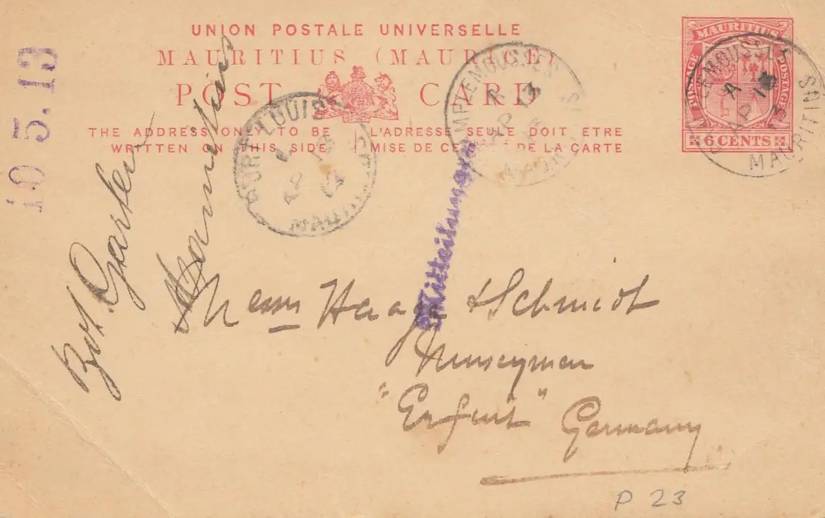 Maurice: 1913: post card Louis to Erfurt/Germany