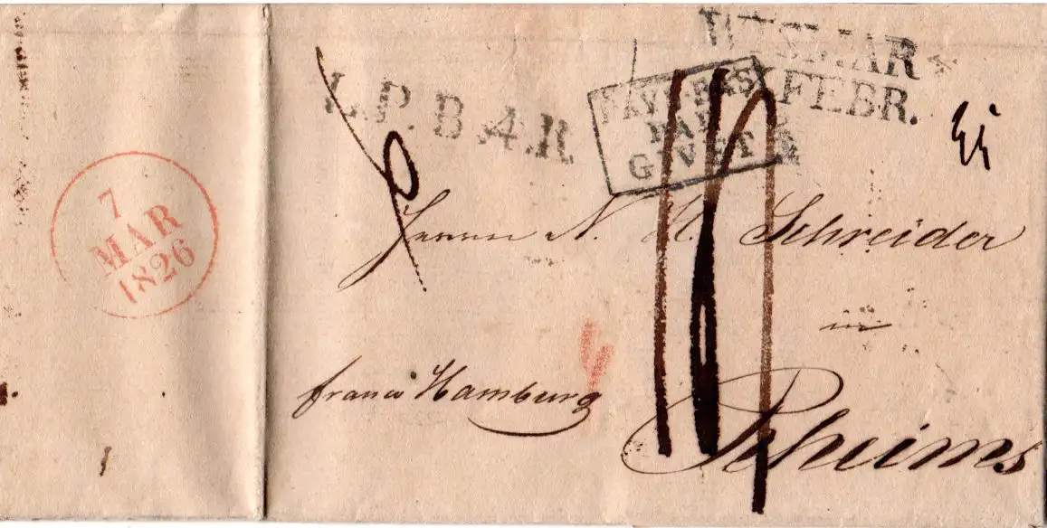 Mecklenburg-Schwerin 1826, L2 Wismar auf Porto Brief via NL n. Frankreich