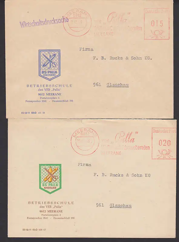 Meerane (Sachs) AFS VEB PALLA Betriebsschule mit ansprechenden Farbdruck 1968, Schere Spule