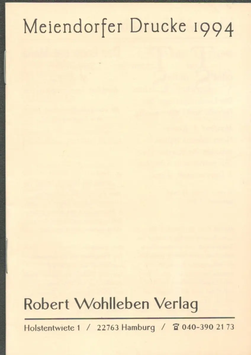 Meiendorfer Drucke 1994. Rober Wohlleben Verlag. [Verlagsverzeichnis].
