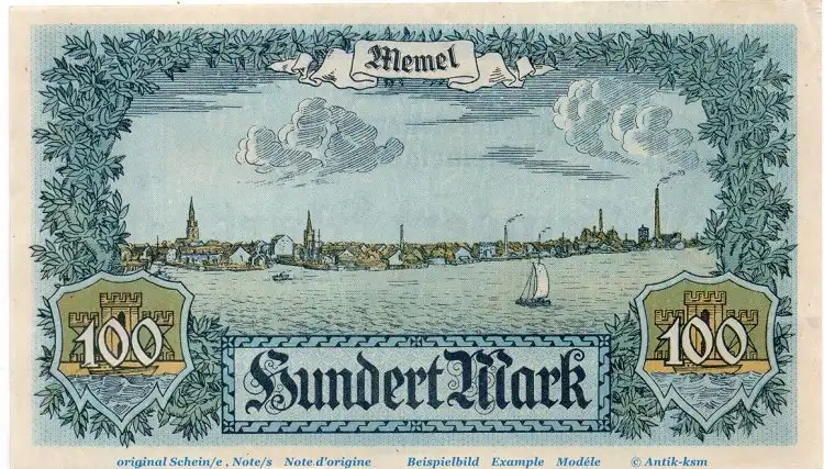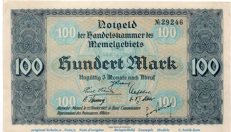 Notgeld , Banknote über Einhundert Mark von 1922 , deutsche Nebengebiete , MemelGrabowski / Rosenberg / Pick : MEM-9 / 854 / 9