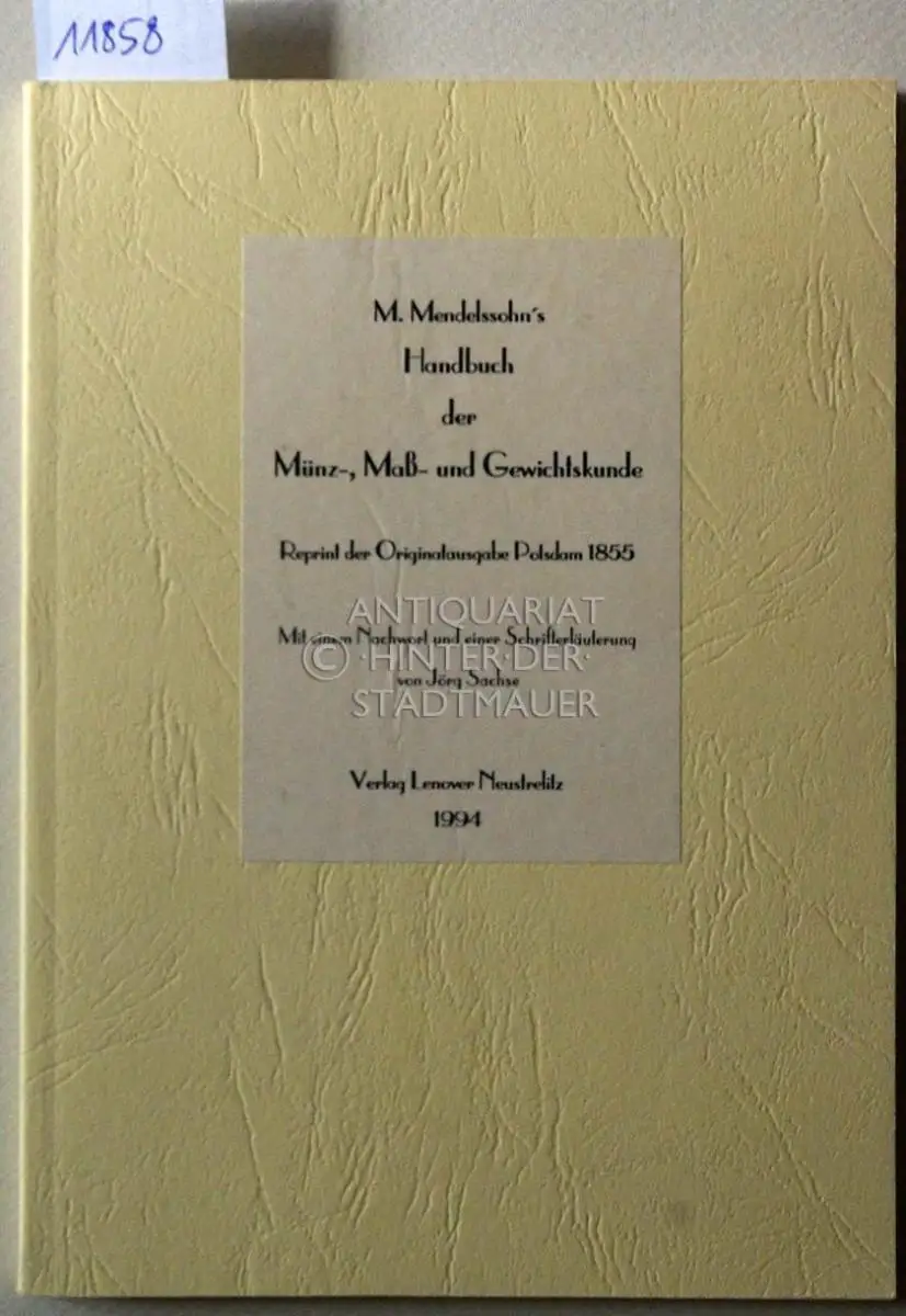 Titel: M. Mendelssohn`s Handbuch der Münz-, Mass- und Gewichtskunde