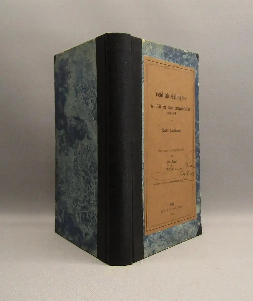 Menzel, Karl Geschichte Thüringens zur Zeit des ersten Landgrafenhauses von Theodor Knochenhauer Friedrich Andreas Perthes - Gotha - 1871, Or. Ausgabe Sprache: deutsch Größe: 8 ° (ca. 21 x 14 cm) Kollation: 375 S.; Halbleinen, Or. Ausgabe Zustand: Einband leicht berieben, Titel innen und außen beschrieben. Papier stärker gebräunt. Gutes Exemplar. Bilder sind ein Bestandteil der Zustandsbeschreibung. Zustand wurde bereits im Preis berücksichtigt.