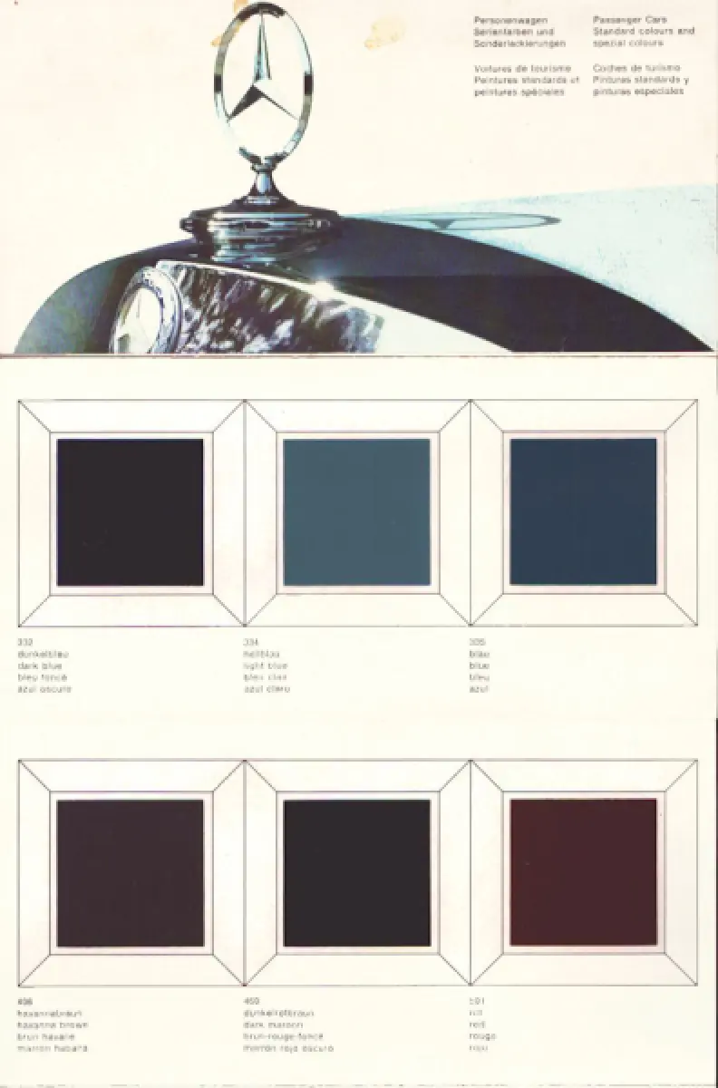 Mercedes-Benz Farbmuster Prospekt 8.1965