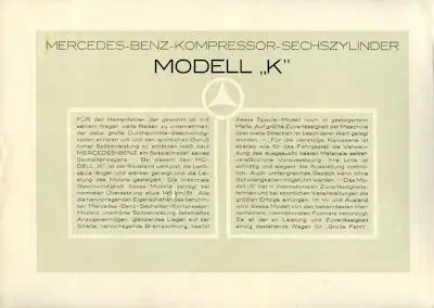 Mercedes-Benz Modell K Prospekt ca. 1926